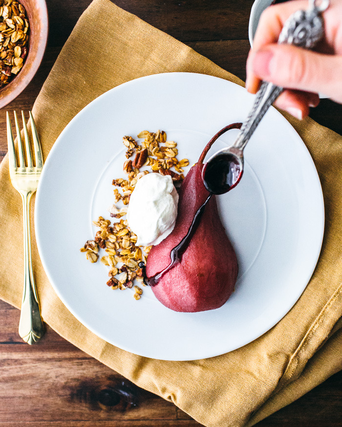 Poached Pear w/Granola & Whipped Cream A Couple Cooks